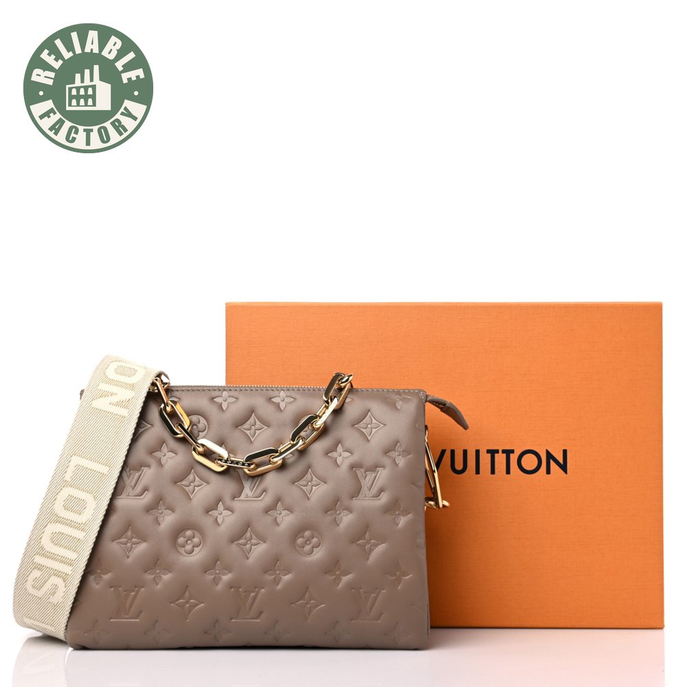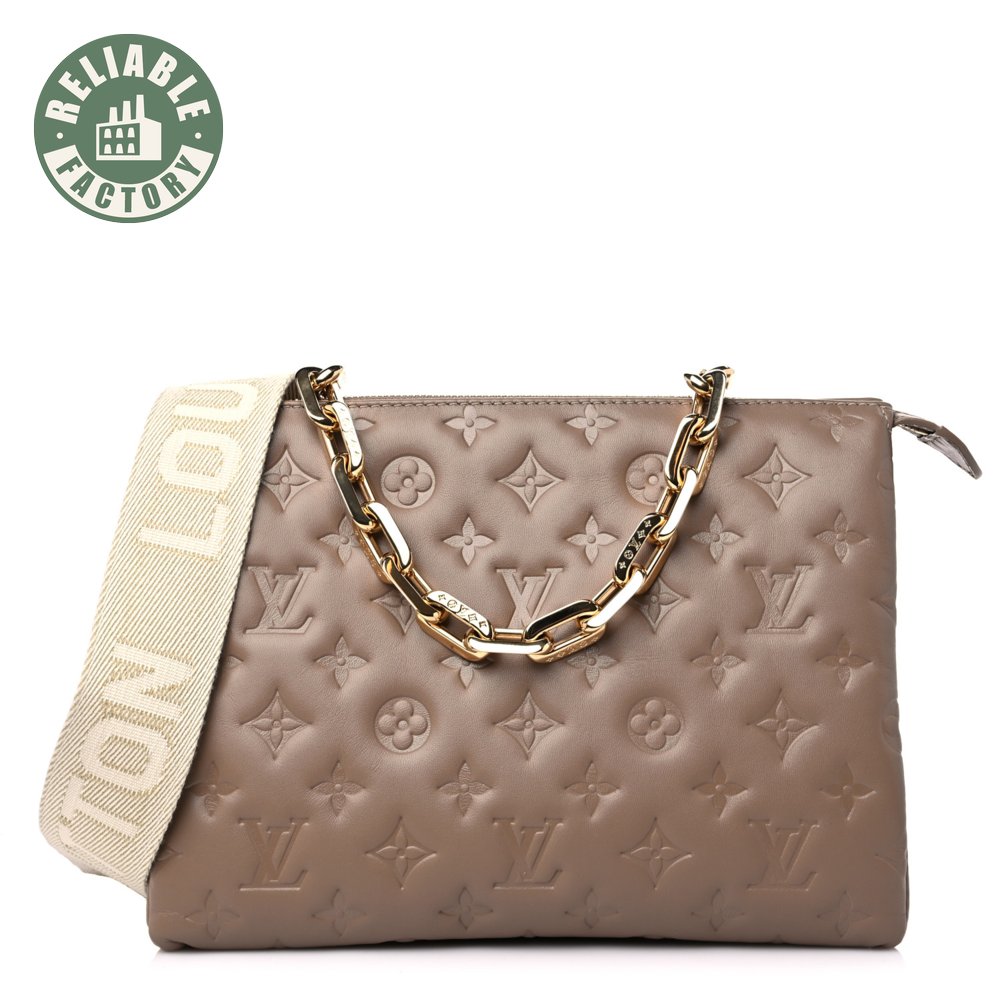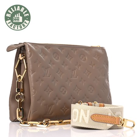 Lambskin Embossed Monogram Coussin PM Taupe