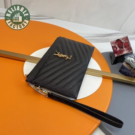 Saint Laurent Cassandre Matelasse Large Bill Pouch In Quilted Black