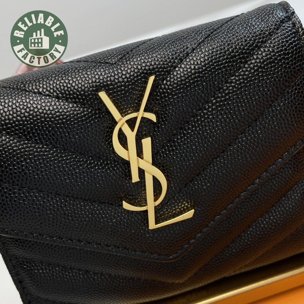 Saint Laurent Grain De Poudre Matelasse Chevron Small Monogram Envelope Wallet Black