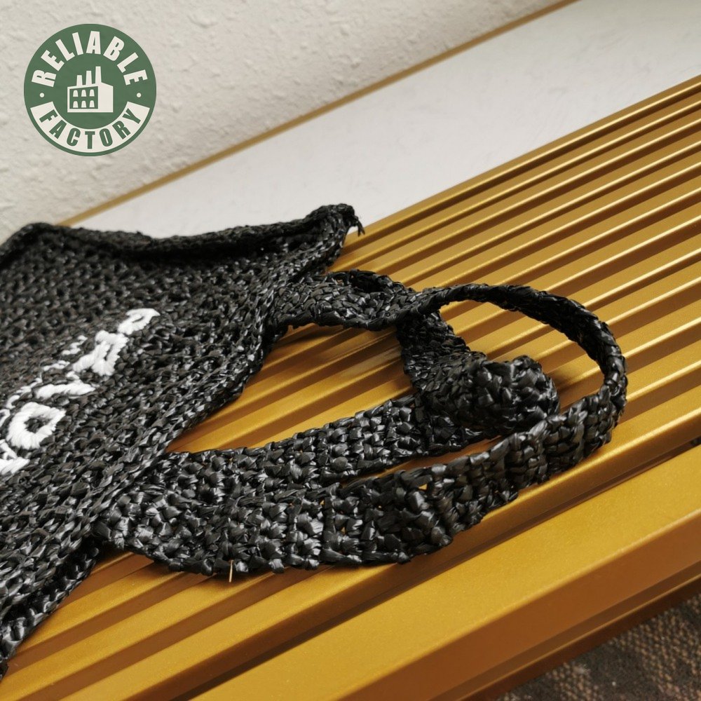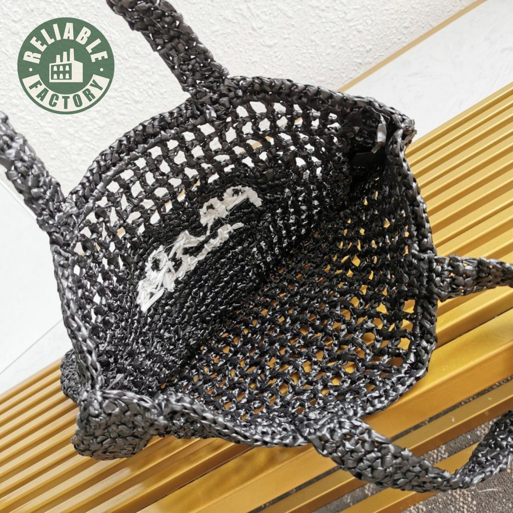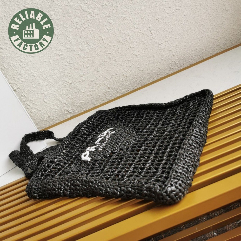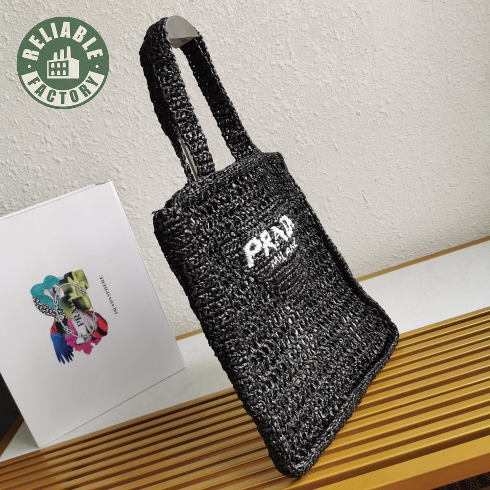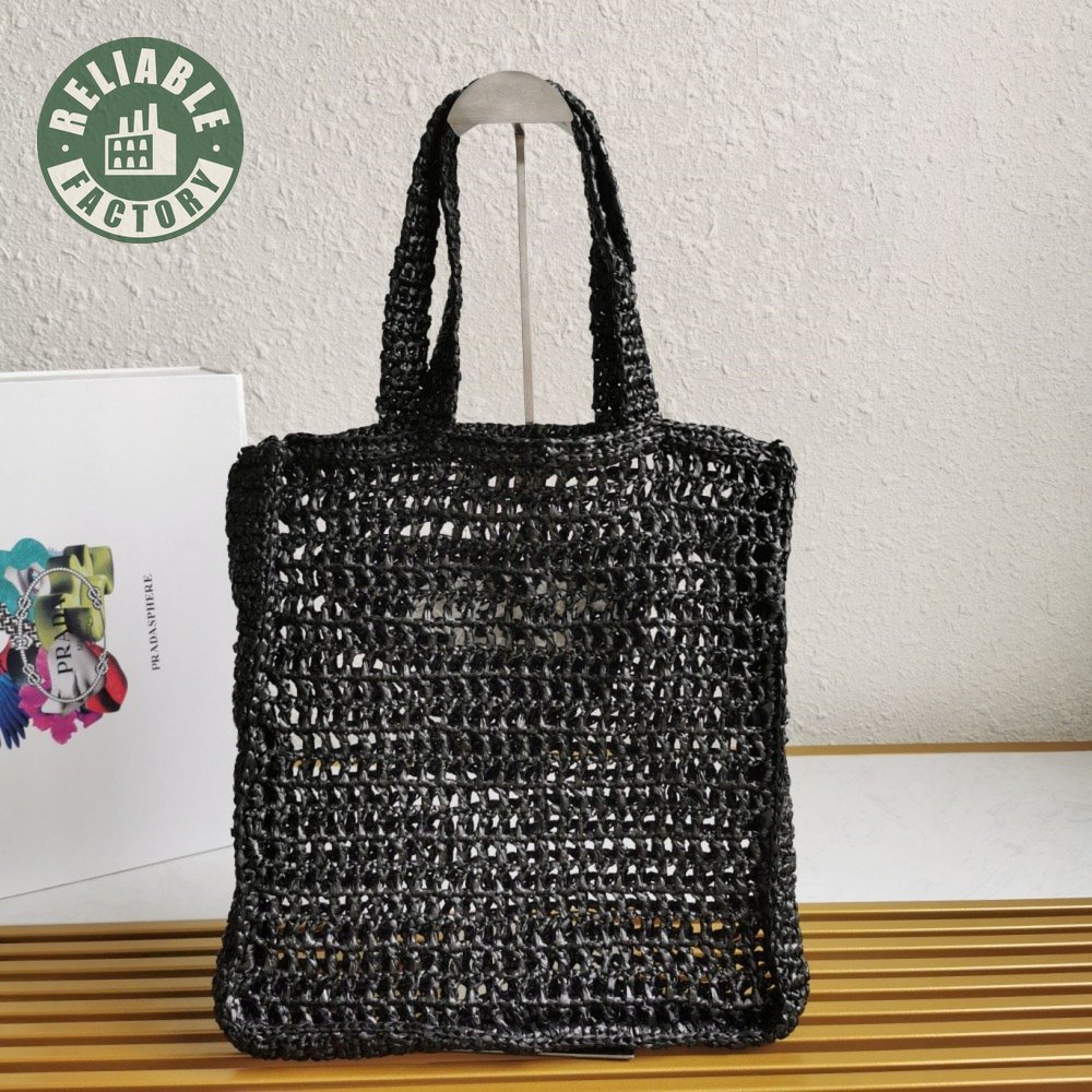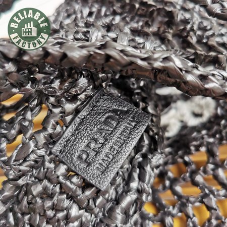 Prada Raffia Tote Bag Black 1BG393