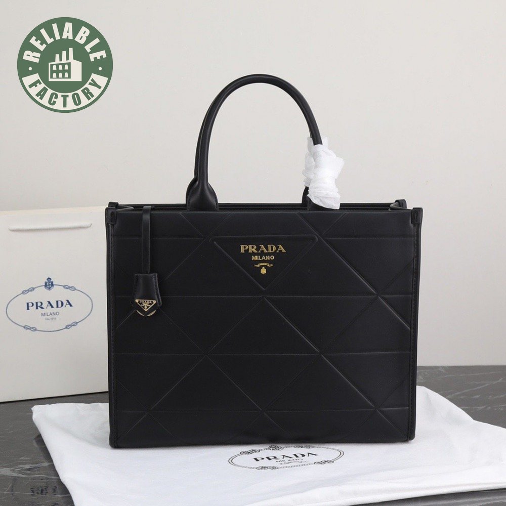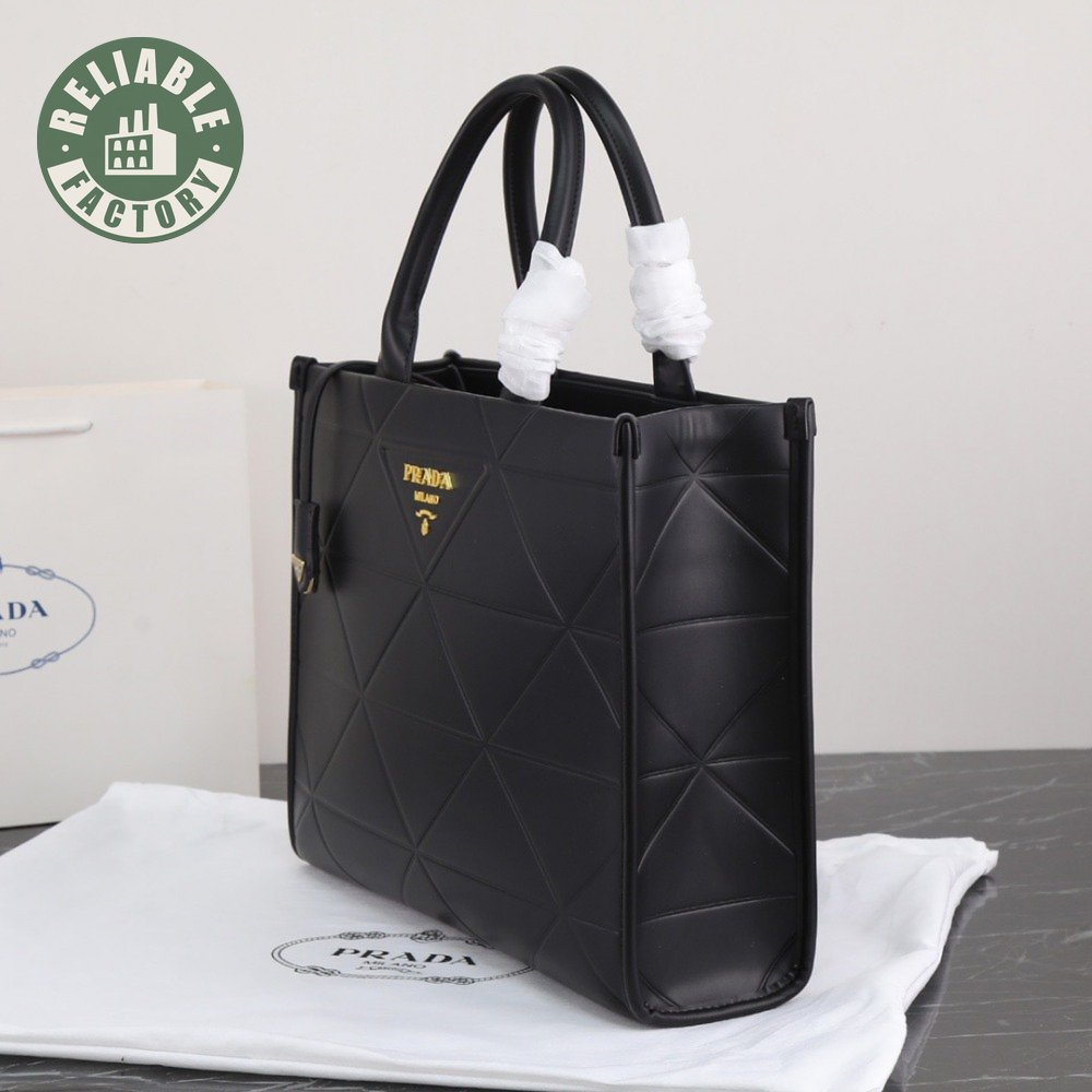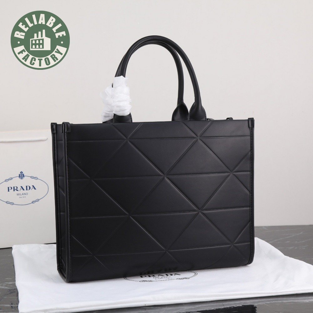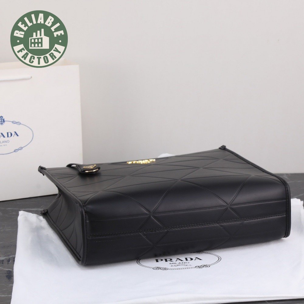 Large Leather Prada Symbole Bag With Topstitching Black 1BA377