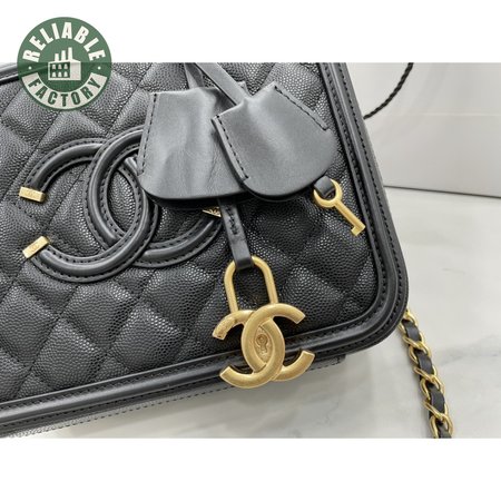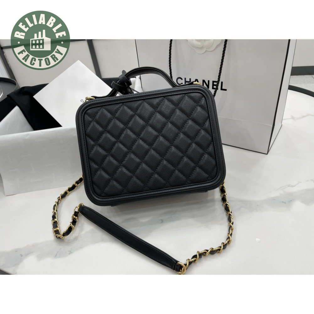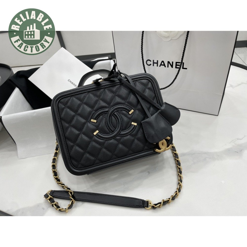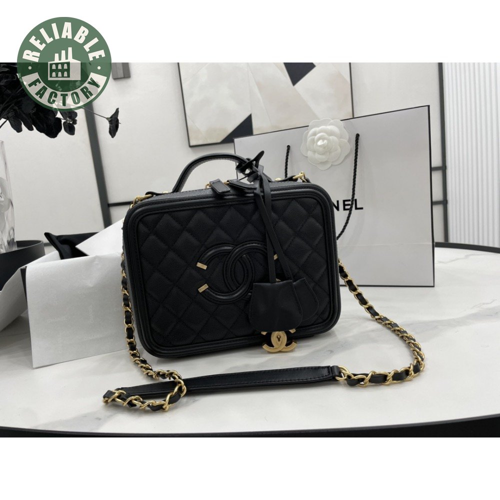 Chanel CC Filigree Vanity Case Quilted Medium Black