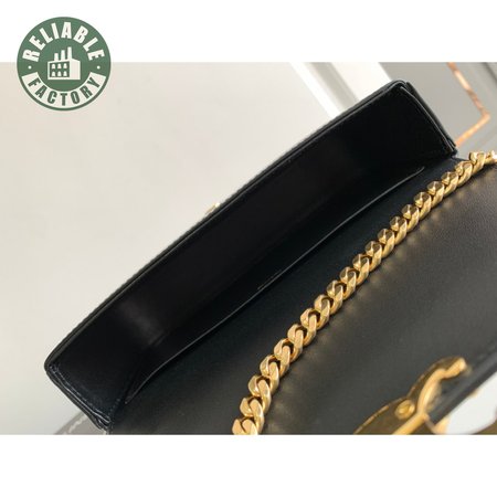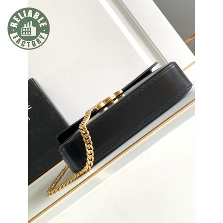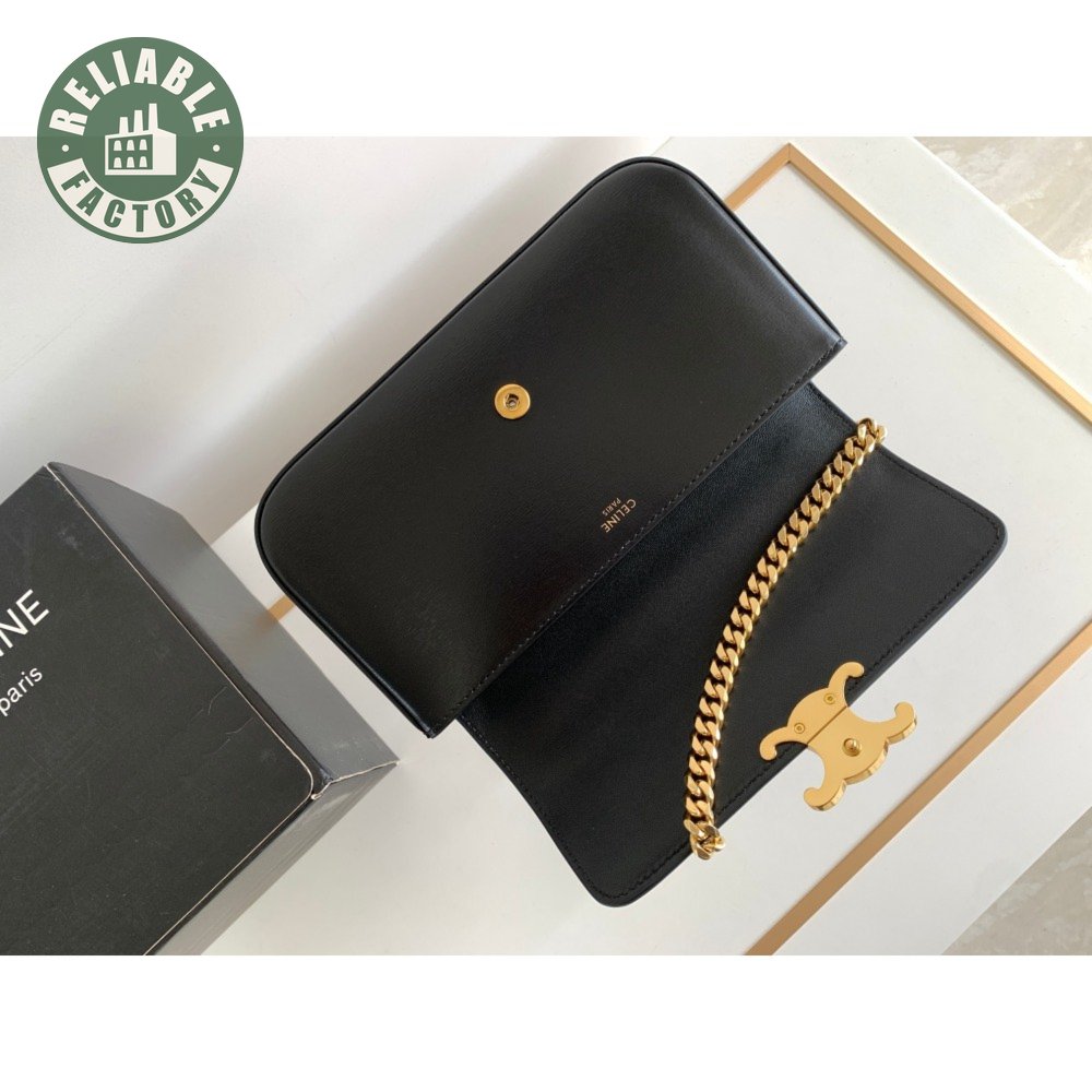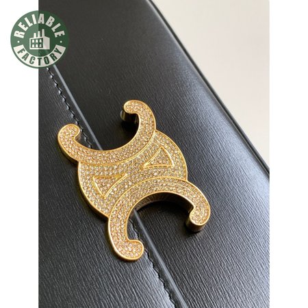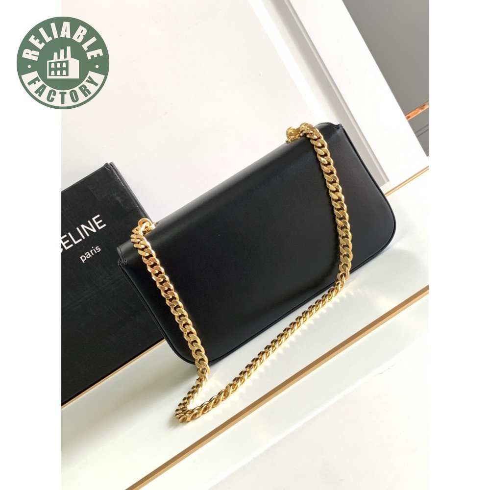 Celine Triomphe Chain Shoulder Bag With Rhinestone Lock In Shiny Calfskin Black