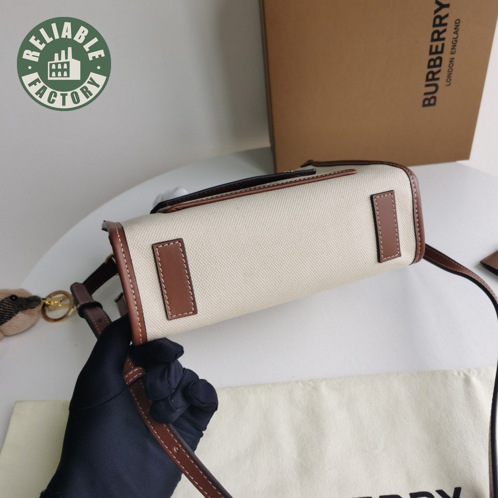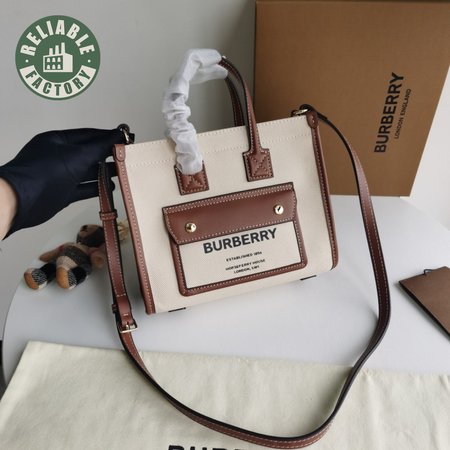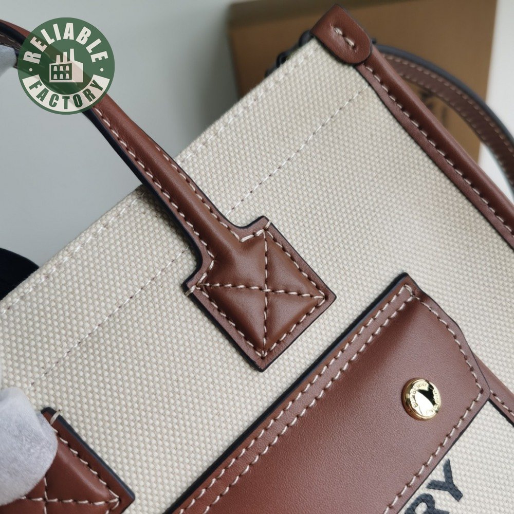 Burberry Two-tone Canvas And Leather Mini Freya Tote Natural/Tan 80441431