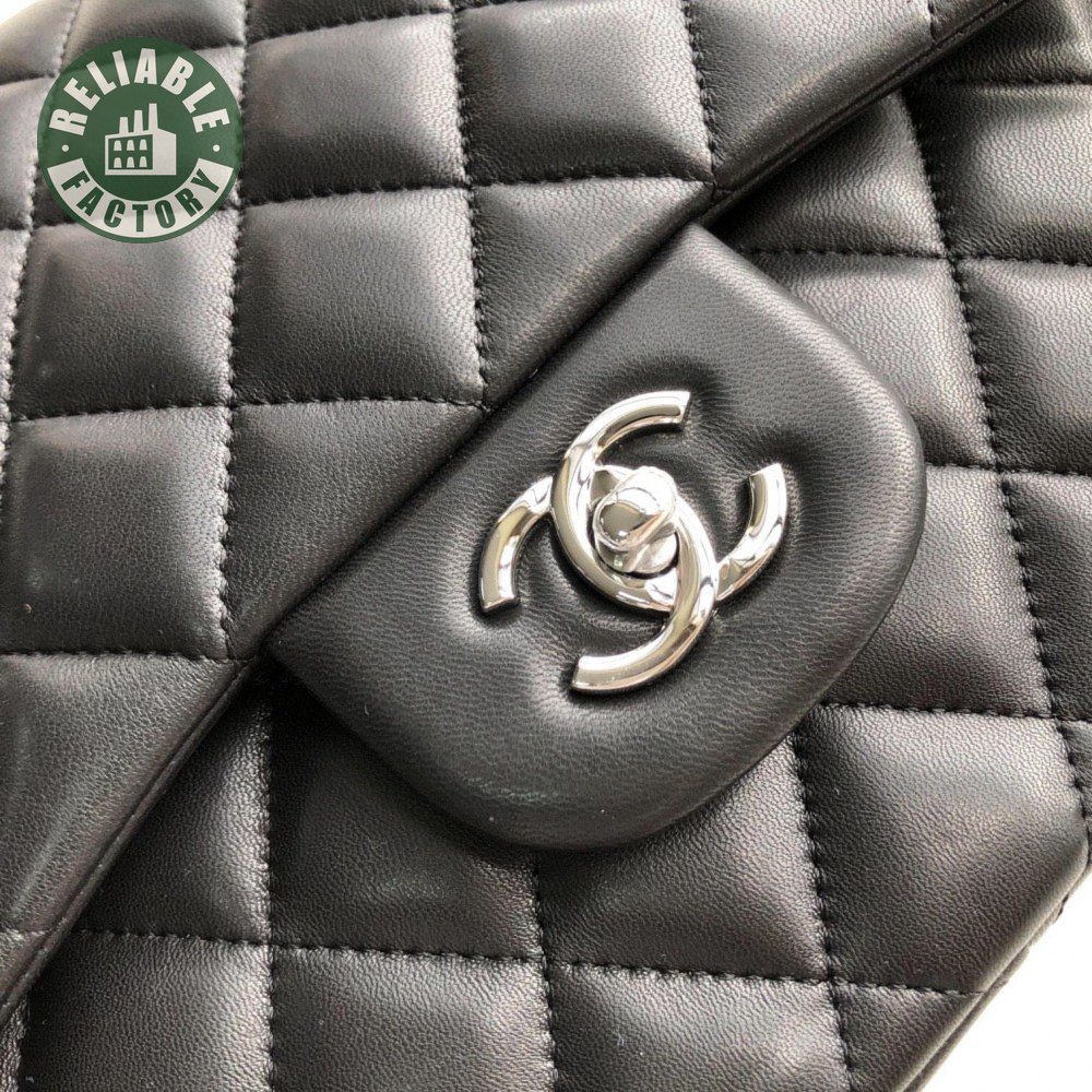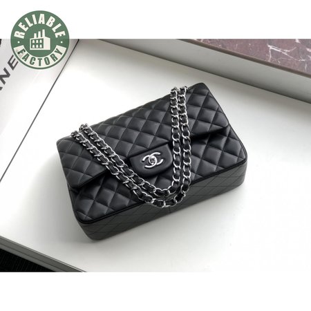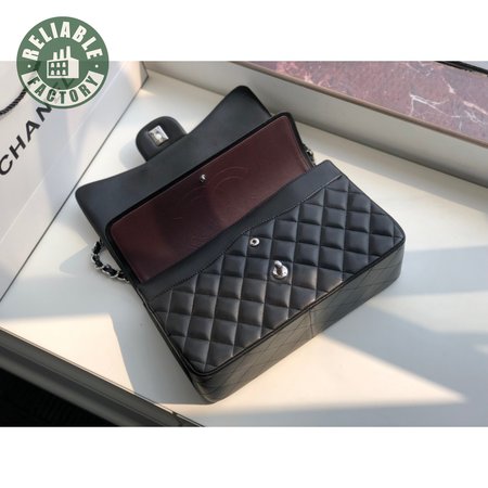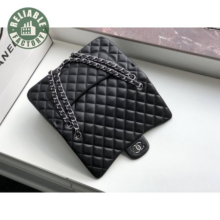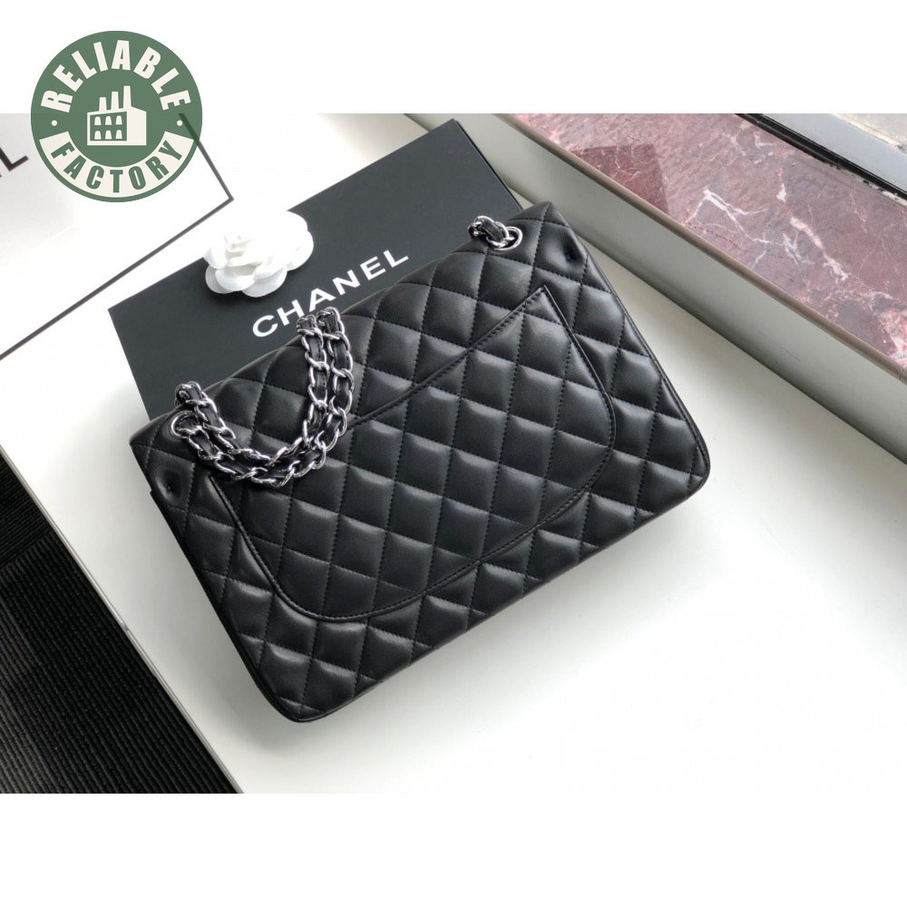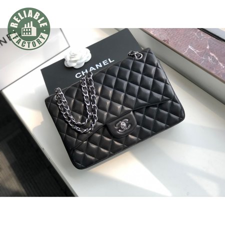 Chanel Classic Double Flap Quilted Lambskin Silver-tone Jumbo Black