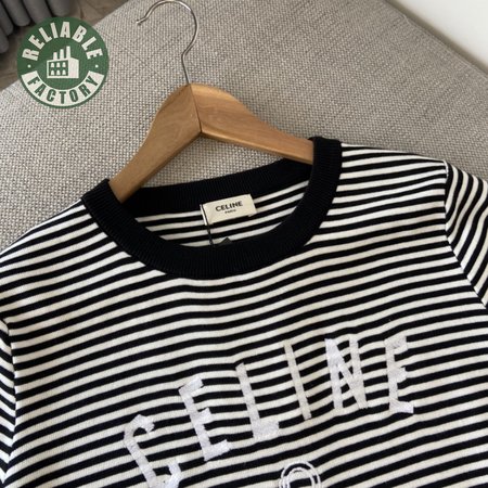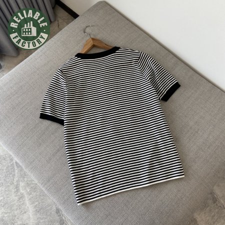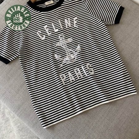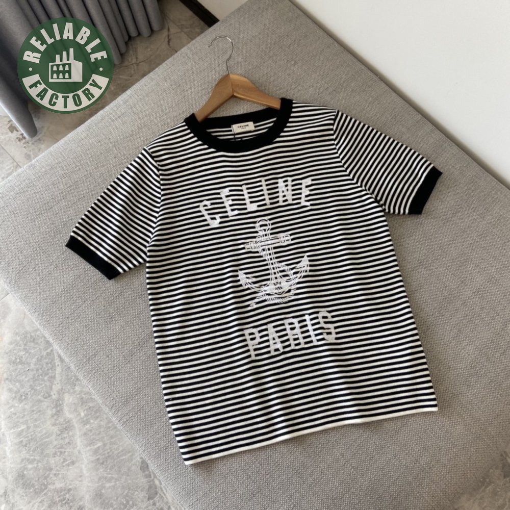 Celine Anchor Striped Jersey 70s Style T-Shirt Fluorescent White/Black