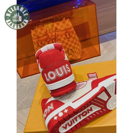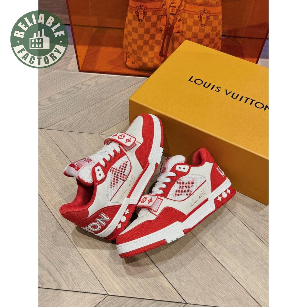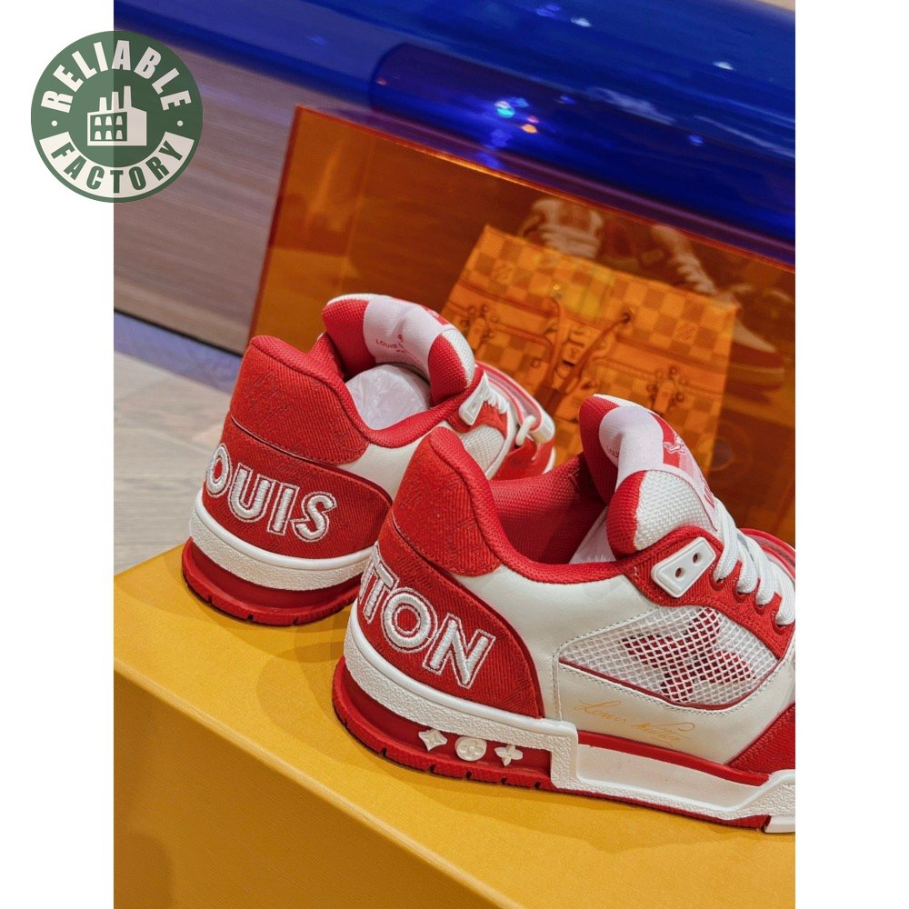 trainer red monogram denim