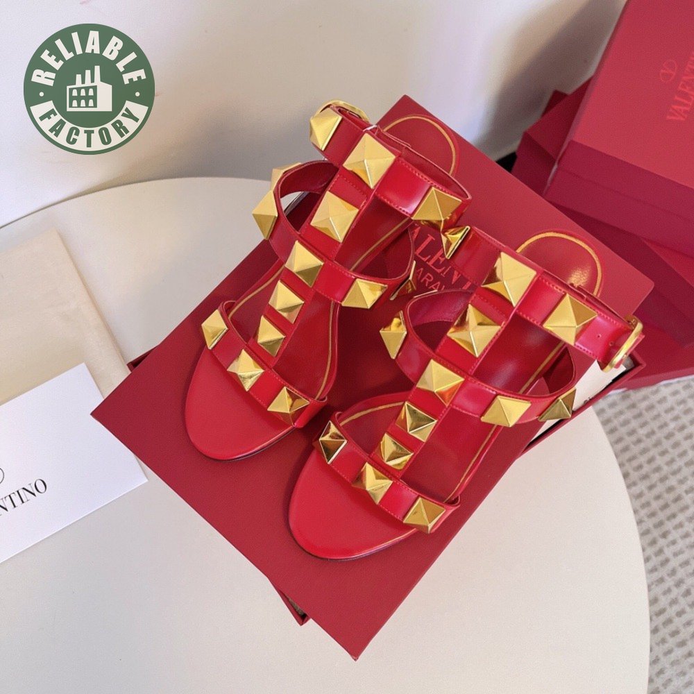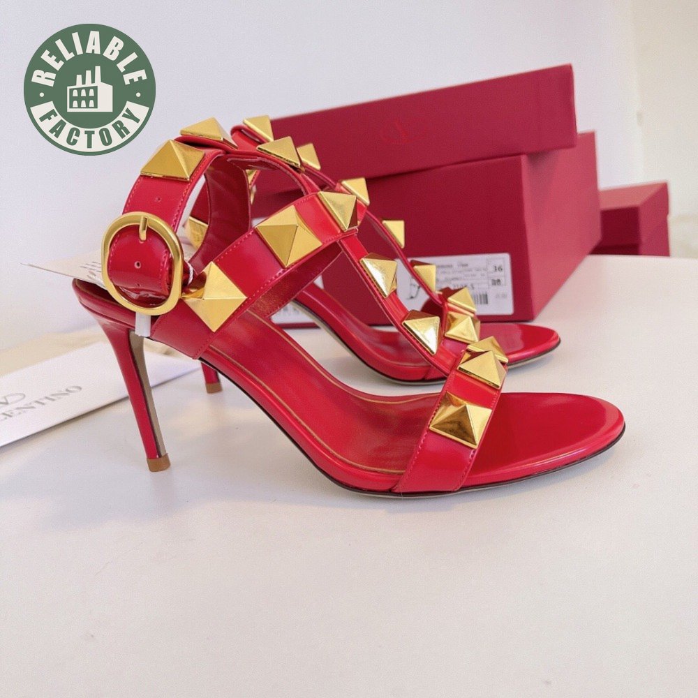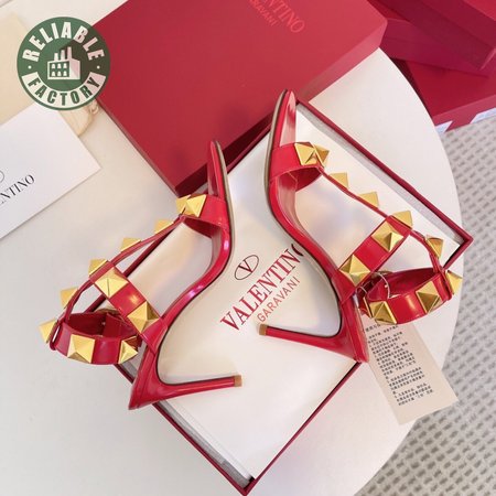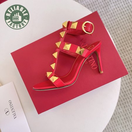 Valentino Roman Stud Calfskin Sandal 100mm Red 35-39