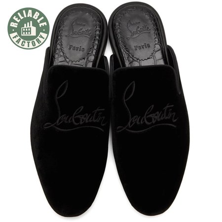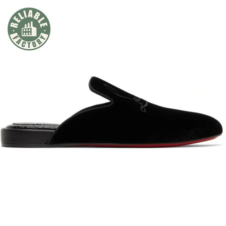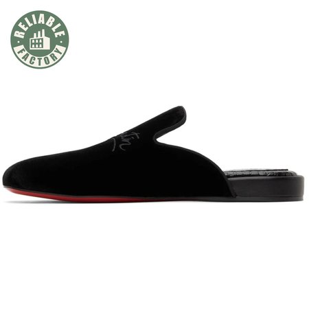 Christian Louboutin Navy Coolito Flat Black Velvet Backless Slide