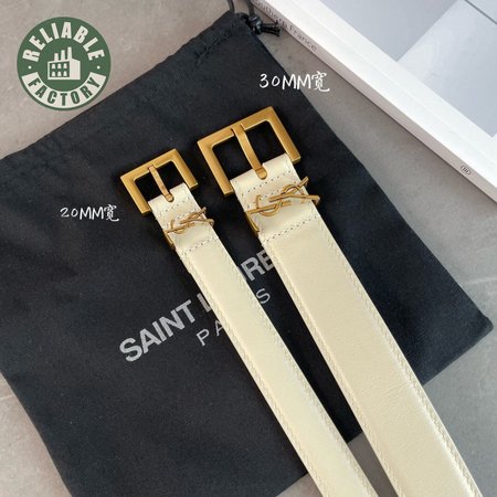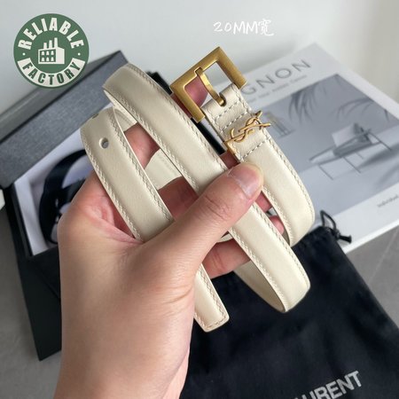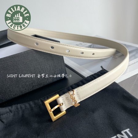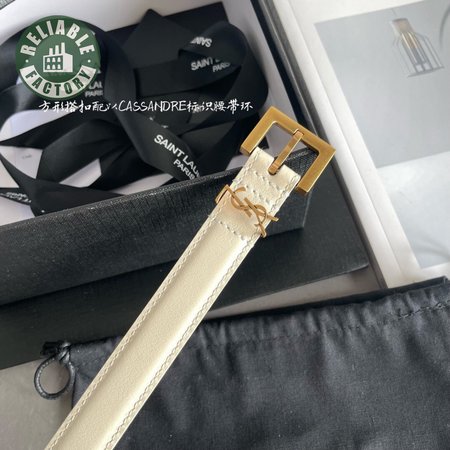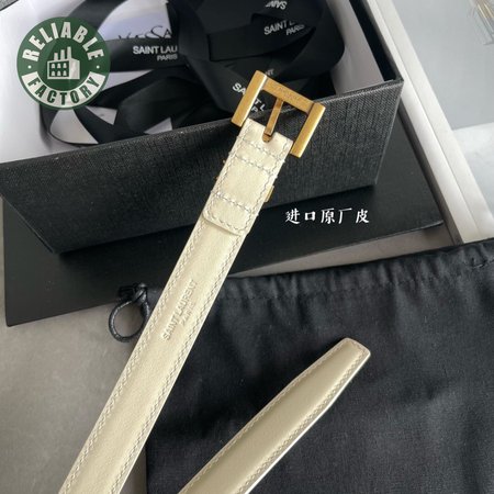 Saint Laurent Thin White Belt With Square Buckle 2.0cm