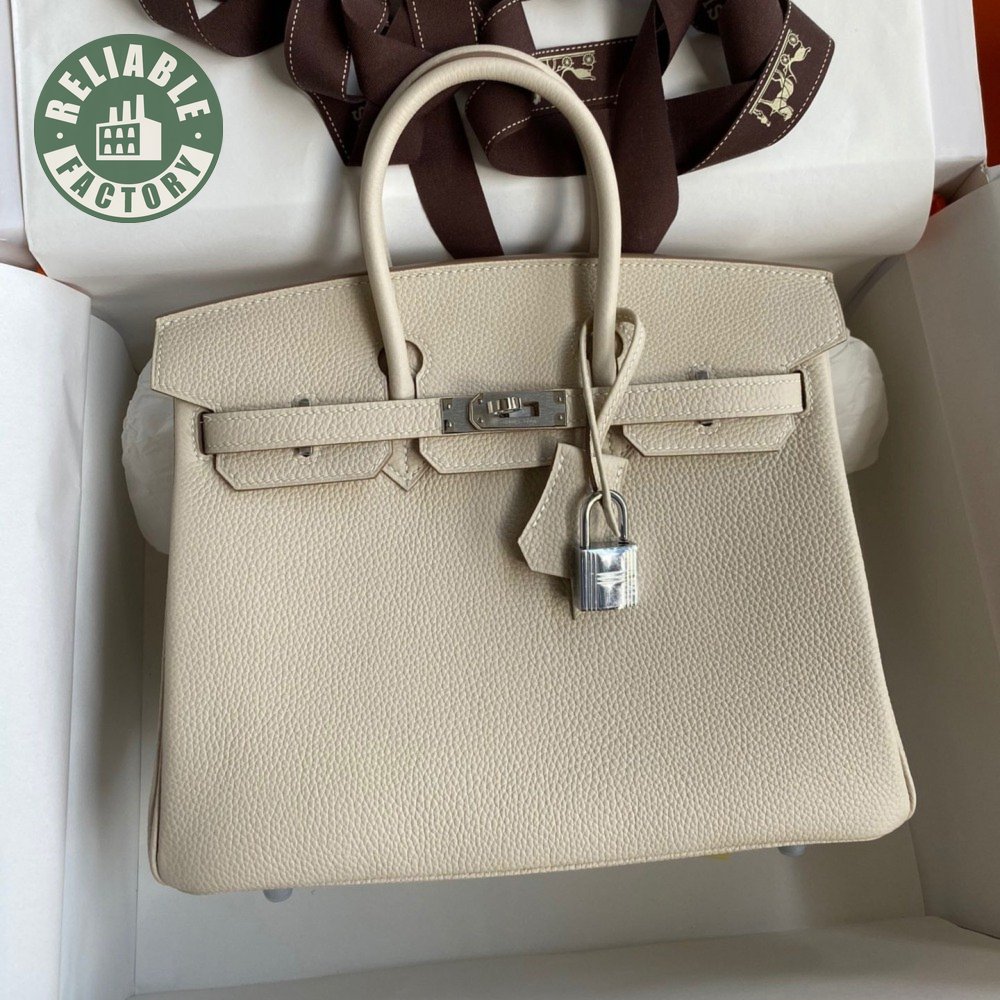 Hermes Craie Togo Birkin 25 Palladium Hardware